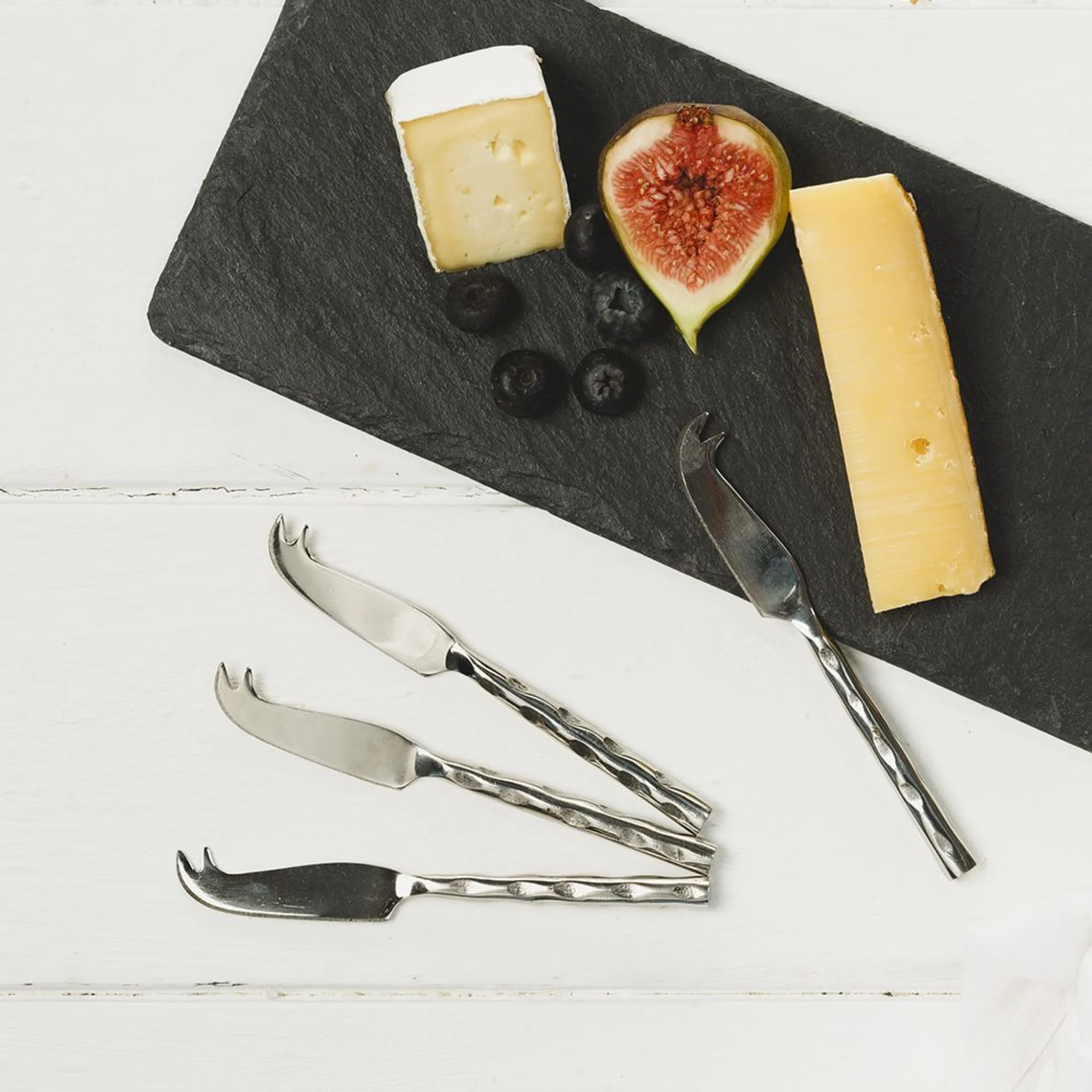 Enjoy a cheese board with friends in style with our stainless steel mini cheese knives. Whether you choose to present a generously-stocked cheese platter with a selection of knives, or give guests their own knives to serve themselves, these dinky cheese knives are just right for the job. Featuring a unique twist design handle and a hard wearing two pronged knife these are perfect for slicing and serving cheeses..